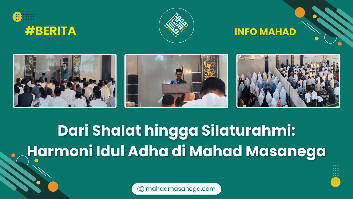 Bertindak sebagai bilal dalam pelaksanaan Shalat Idul Adha adalah Muhammad Fahry Masrihan, salah satu santri Mahad Masanega. Adapun yang bertugas sebagai imam sekaligus khatib adalah Ustadz Yofi Irwantiyono, S.Ag., yang membawakan khutbah dengan tema: “Idul Adha: Momentum Penyucian Jiwa, Penguatan Iman, dan Kepedulian Sosial.”