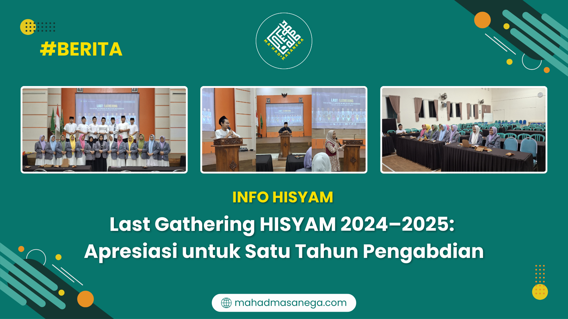 Masanega – Kamis, 8 Mei 2025 – Suasana penuh kekeluargaan menyelimuti Aula MTsN 1 Malang saat digelarnya acara Last Gathering Demisioner Pengurus HISYAM Masa Khidmah 2024–2025. Kegiatan yang berlangsung sekitar pukul 20.00 WIB ini dihadiri oleh para demisioner pengurus HISYAM serta jajaran ustadz dan ustadzah dari Dewan Pembina.
