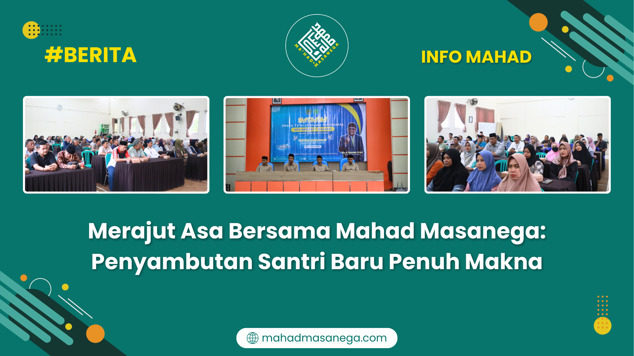 Acara dimulai dengan pembukaan, dilanjutkan sambutan penyerahan dari perwakilan wali santri baru, Bapak Abdus Salam, S.Ag., M.Sy., yang menyampaikan rasa syukur dan harapan besar terhadap pendidikan yang akan dijalani putra-putri mereka di Mahad Masanega. Sambutan penerimaan diberikan oleh Mudir Mahad Masanega, Ust. Drs. H. Nurkolis, yang menyampaikan ucapan selamat datang serta komitmen Mahad dalam mendampingi tumbuh kembang santri.